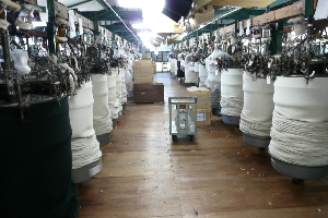 吊編機は現代の最新式の編立機に比べ速度が10~15分の1とも言われるほどゆっくりと生産します。それにより糸のストレスが少なく柔らかい独特の風合いを持つとされて、大人の服でもファンが多くいらっしゃいます。